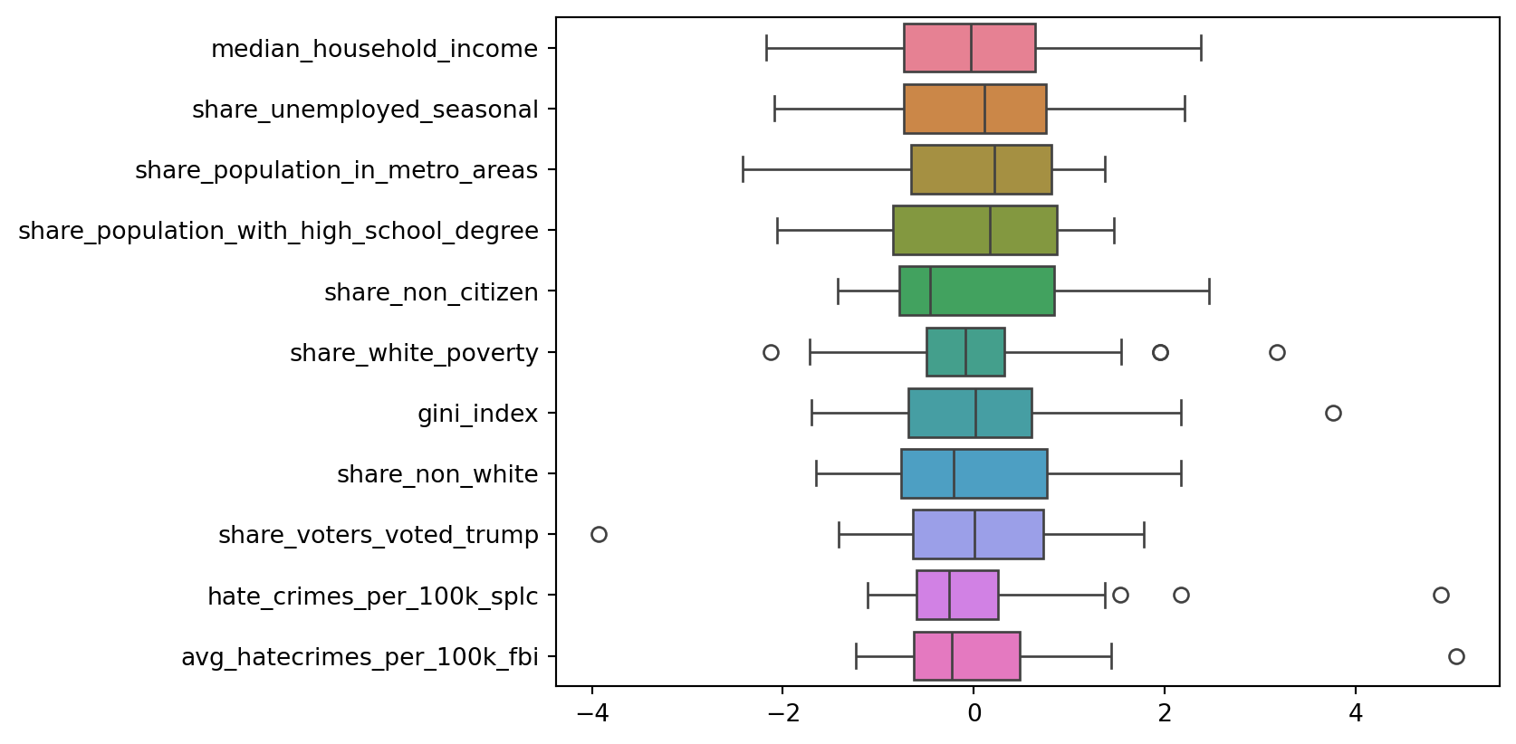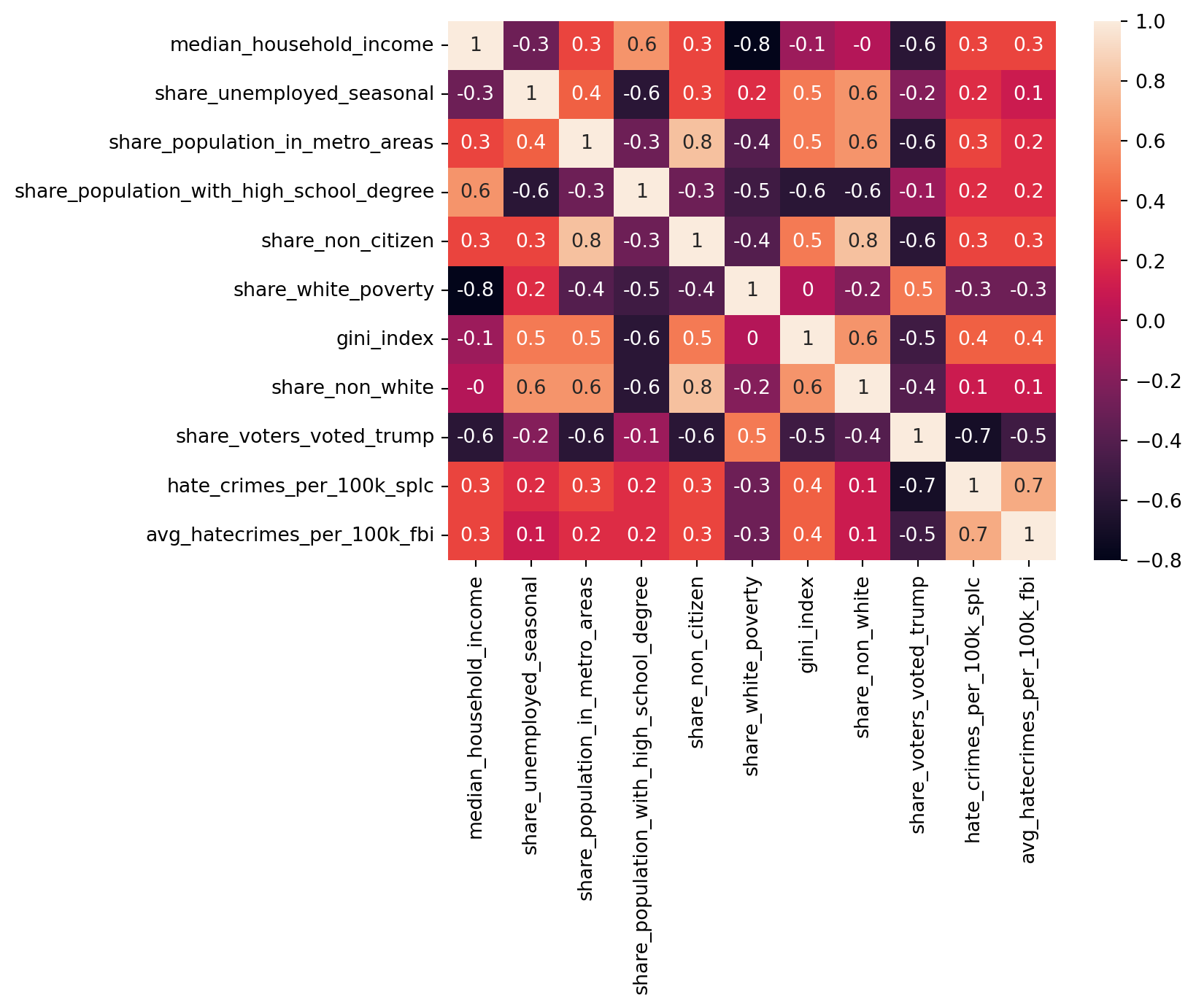 NAME | median_household_income | share_unemployed_seasonal | share_population_in_metro_areas | share_population_with_high_school_degree | share_non_citizen | share_white_poverty | gini_index | share_non_white | share_voters_voted_trump | hate_crimes_per_100k_splc | avg_hatecrimes_per_100k_fbi | |