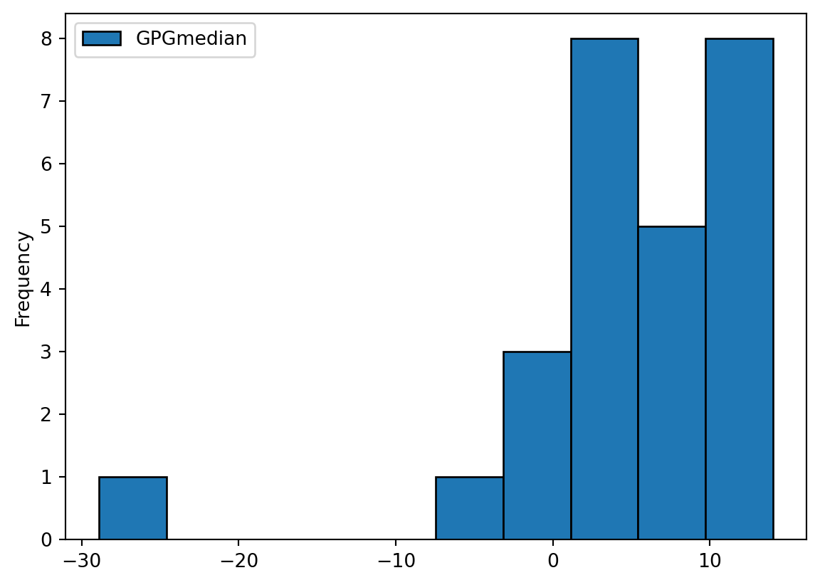 Gender pay gap (GPG) - calculated as the difference between average hourly earnings (excluding overtime) of men and women as a proportion of average hourly earnings (excluding overtime) of men. For example, a 4% GPG denotes that women earn 4% less, on average, than men. Conversely, a -4% GPG denotes that women earn 4% more, on average, than men.