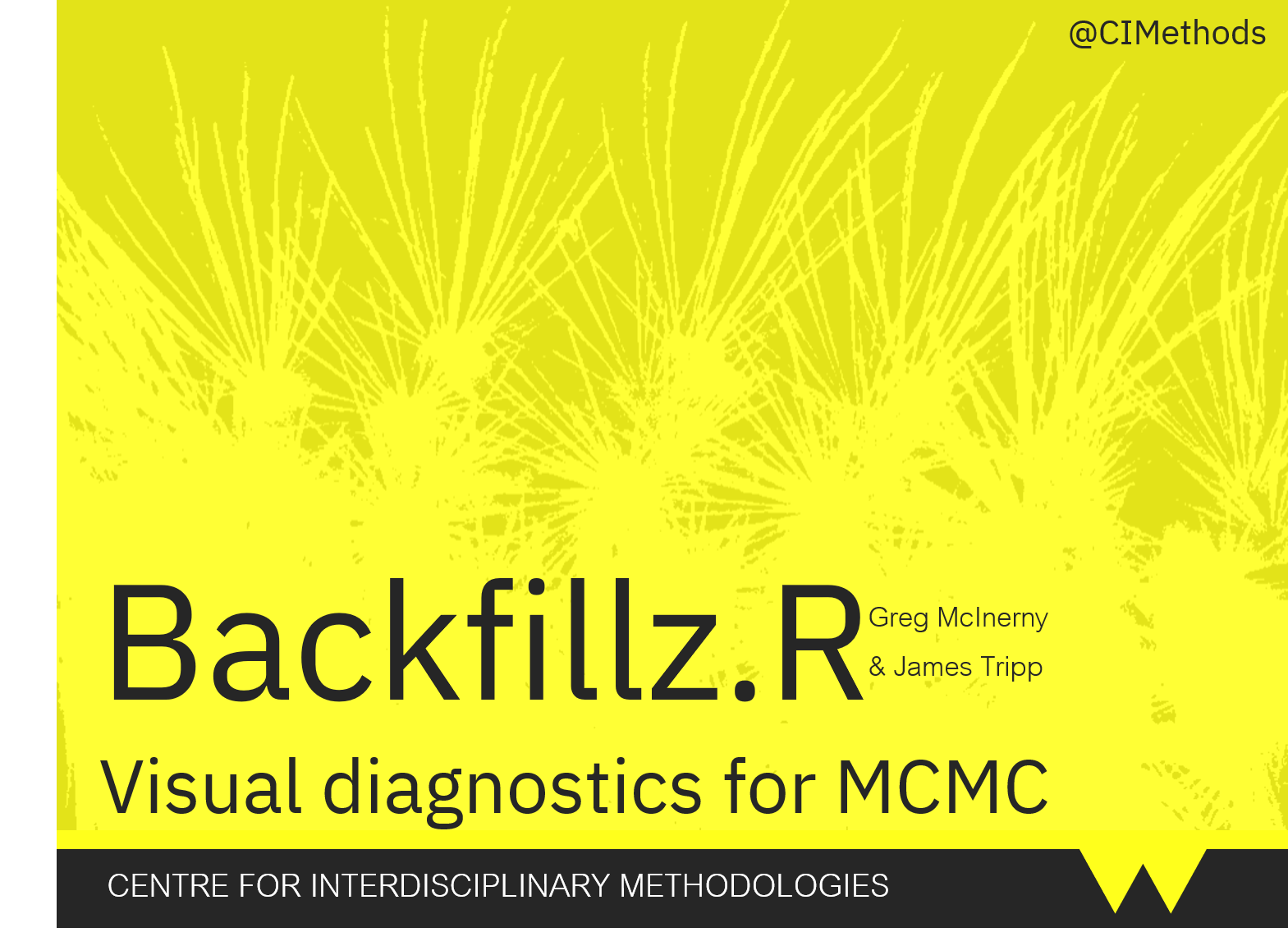 Backfillz.R provides new visual diagnostics for understanding MCMC (Markov Chain Monte Carlo) analyses and outputs. MCMC chains can defy a simple line graph. Unless the chain is very short (which isn’t often the case), plotting tens or hundreds of thousands of data points reveals very little other than a ‘trace plot’ where we only see the outermost points. Common plotting methods may only reveal when an MCMC really hasn’t worked, but not when it has. BackFillz.R slices and dices MCMC chains so increasingly parameter rich, complex analyses can be visualised meaningfully. What does ‘good mixing’ look like? Is a ‘hair caterpillar’ test verifiable? What does a density plot show and what does it hide?
